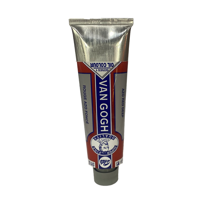 This 40 ml tube of semi-opaque Van Gogh Azo Red Deep 313 is formulated with pigments PO34, and PR57:1. It has a Lightfastness rating of ++ (25 - 100 years under museum conditions). Series 1.