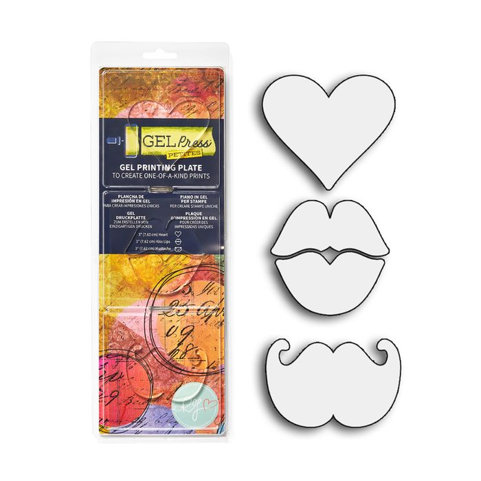 · 3 petite mono-printing plates: Heart, Kiss Lips, Moustache