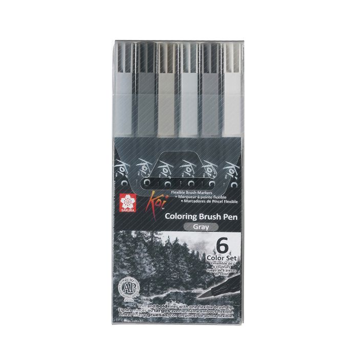 - Sakura Koi Colouring Brush Pen, 6pc Set Gray