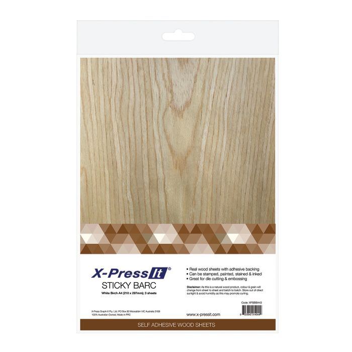 X-Press It Sticky Barc A4 White Birch sheets are self-adhesive wood sheets, cut ultra thin from real wood.