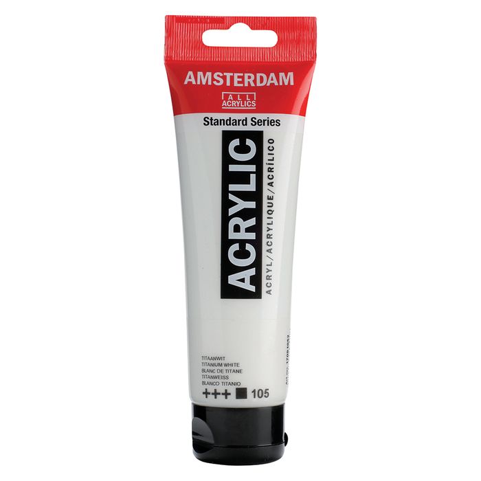 Amsterdam Acrylic paint in Titanium White (105) is an opaque colour with an excellent lightfastness (+++).
