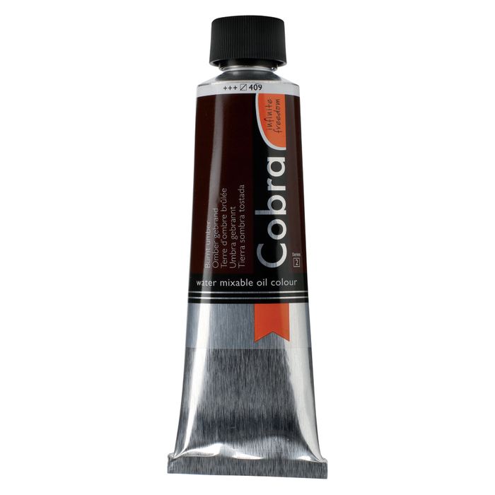 Cobra oil colour in Burnt Umber 409 is a semi-transparent colour with excellent lightfastness (+++).